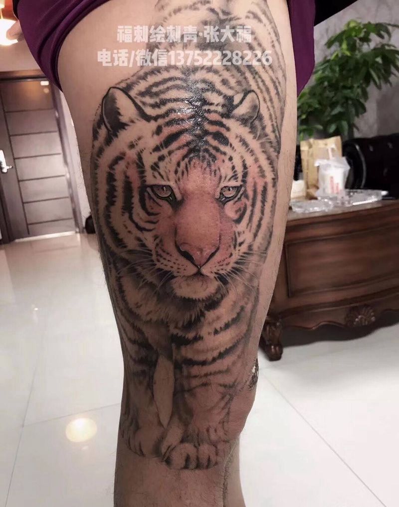 • T网红王老大花腿龙纹身图片_腿部新传统纹身图案