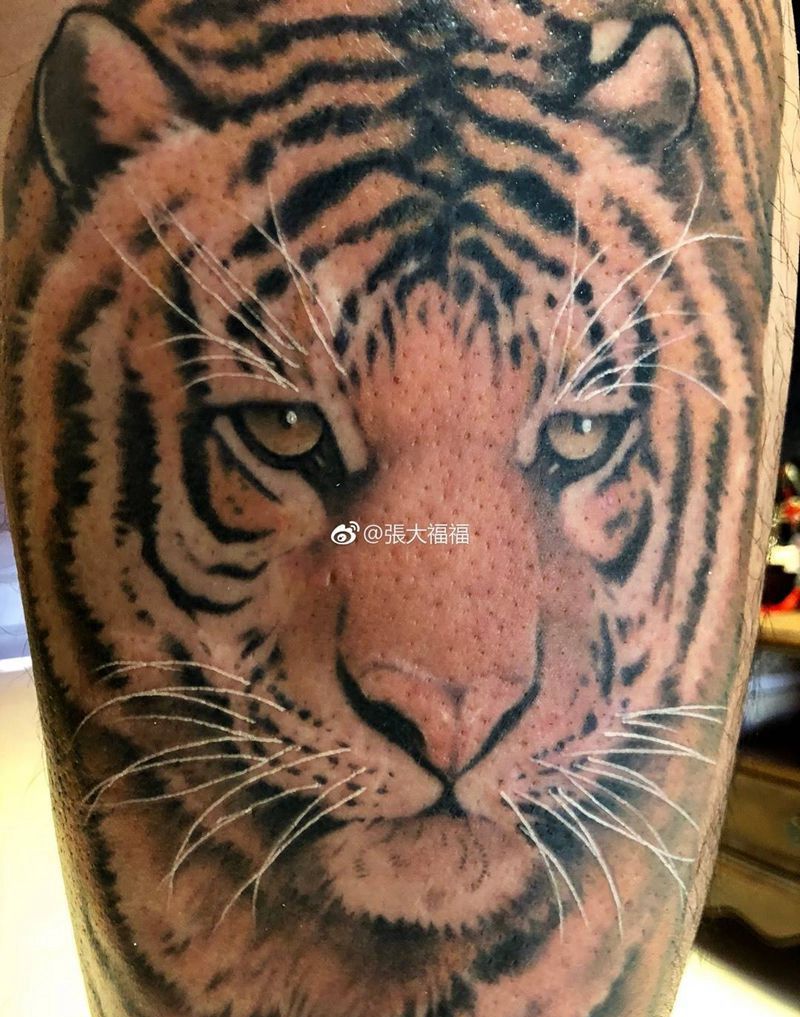 当前位置: 首页 >天津市纹身店-福刺青纹身图案>虎纹身图片_成品腿部腰部传统国画动物写实彩色纹身图案
