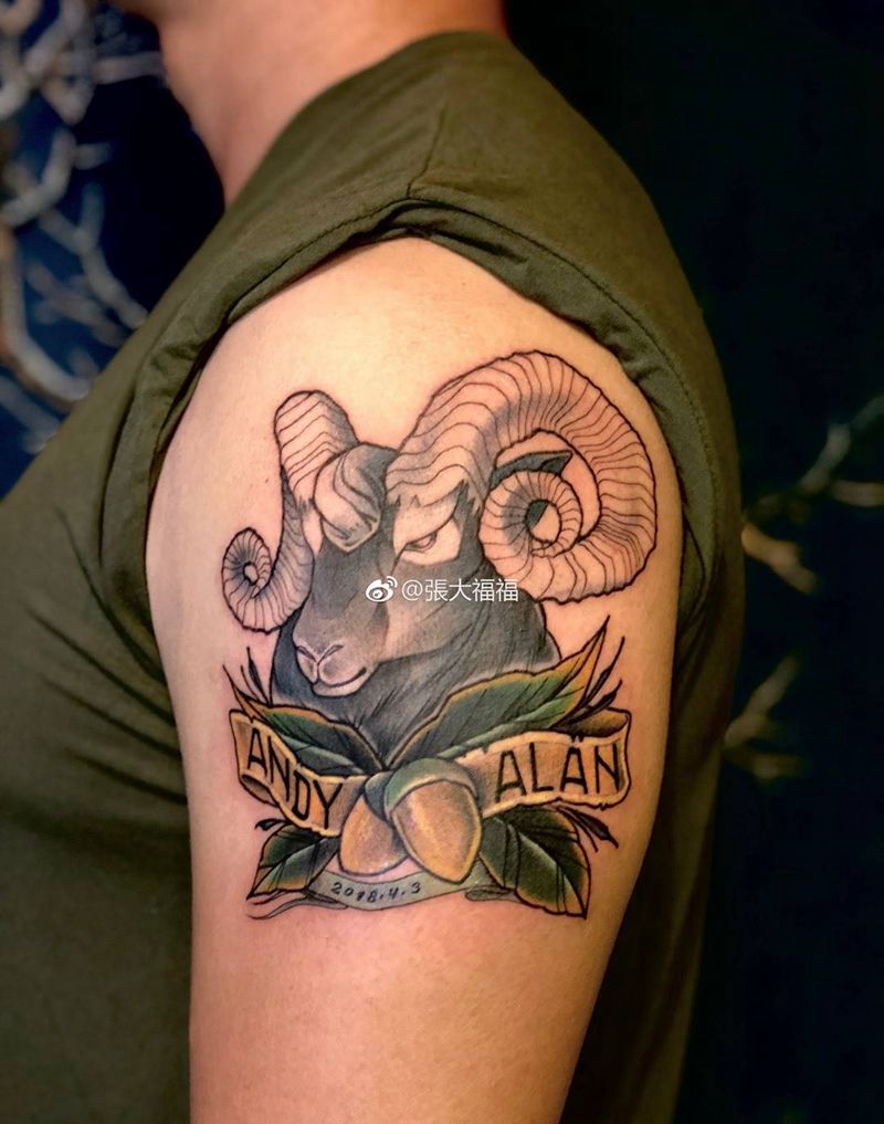 原创白羊座纹身图片_成品手臂欧美动物植物原创彩色纹身图案