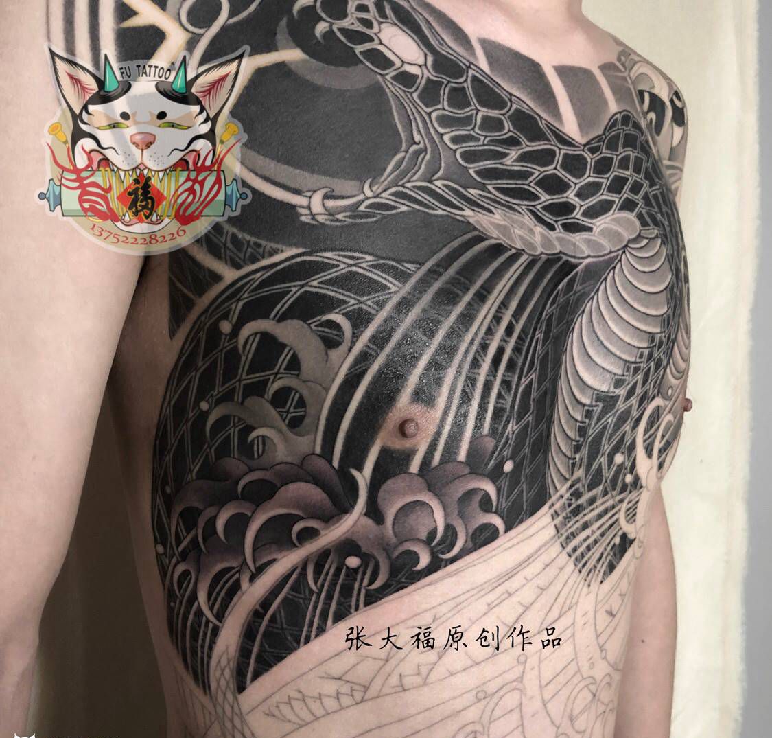 当前位置: 首页 >天津市纹身店-福刺青纹身图案>原创满胸满腹蟒蛇纹身图片_腹部胸部老传统蛇蟒黑灰纹身图案