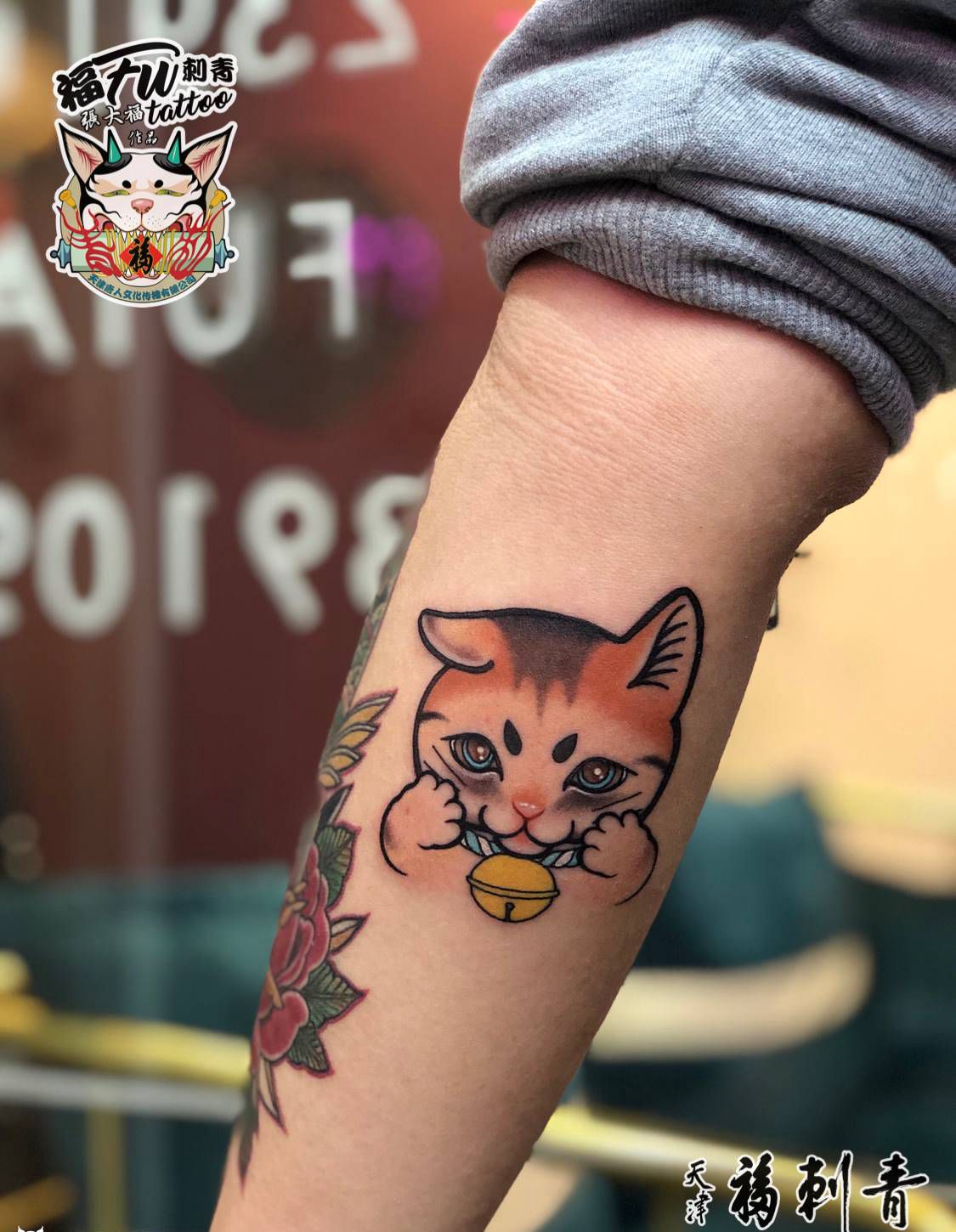 原创小猫纹身图片_手臂New School猫可爱小纹身纹身图案