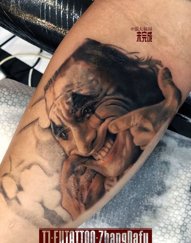 当前位置: 首页 >天津市纹身店-福刺青纹身图案>写实 《Joker》未完成纹身图片_手臂欧美写实小丑Joker彩色写实纹身图案