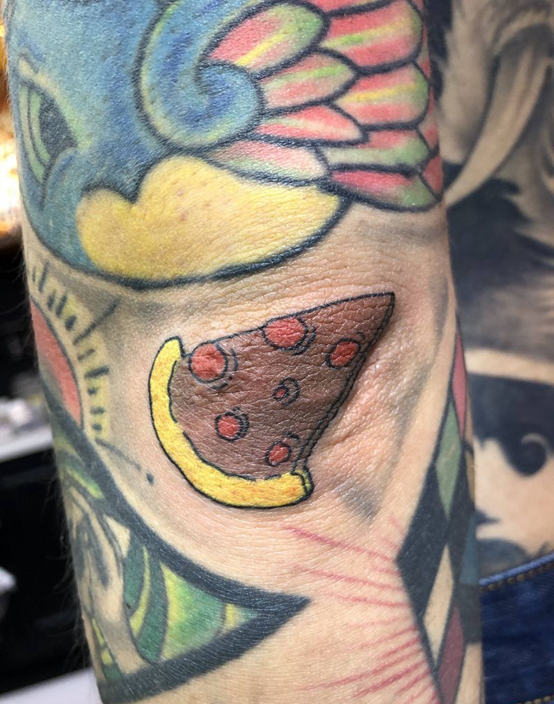 当前位置: 首页 >天津市纹身店-福刺青纹身图案>原创 小披萨纹身图片_手臂Old School卡通拼图可爱纹身图案