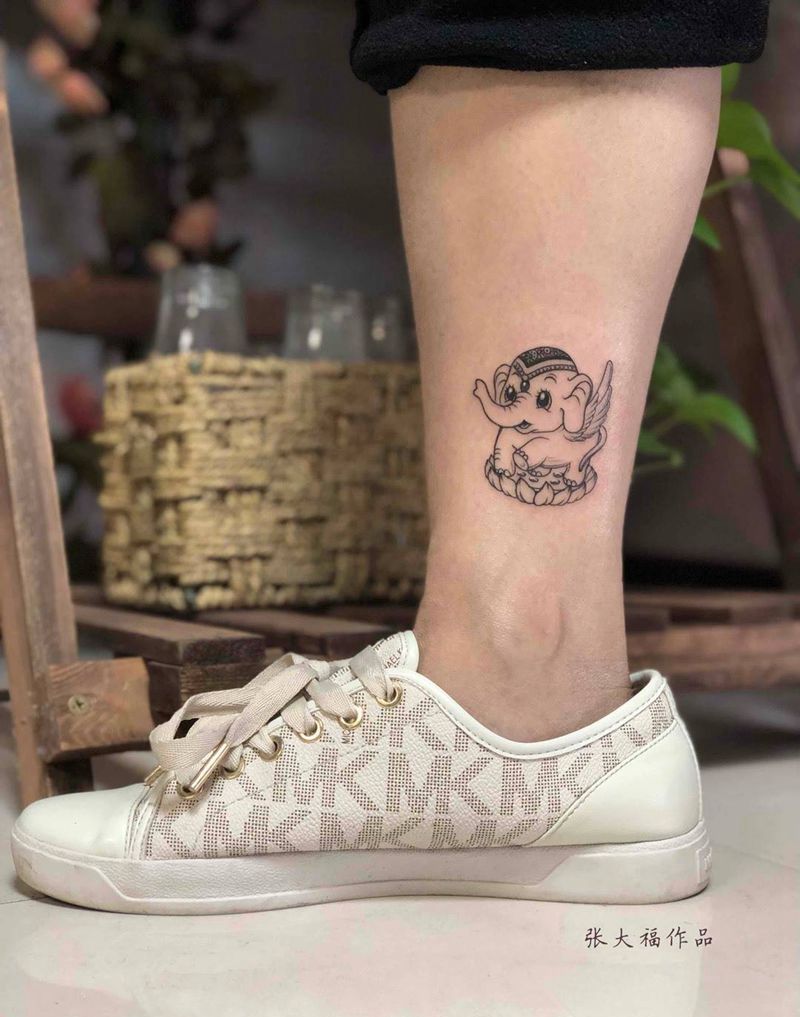 小象纹身图片_腿部脚部小清新可爱象纹身图案