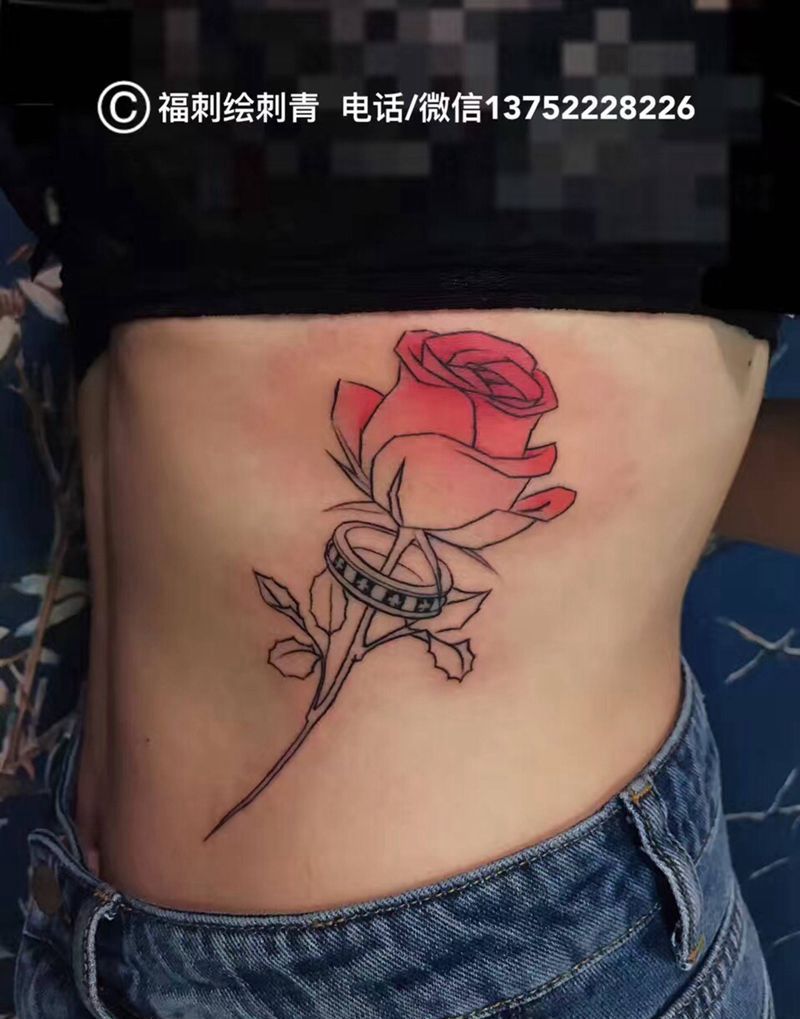 当前位置: 首页 >天津市纹身店-福刺青纹身图案>原创玫瑰戒指纹身图片_成品腰部清新欧美原创植物静物女生彩色纹身图案