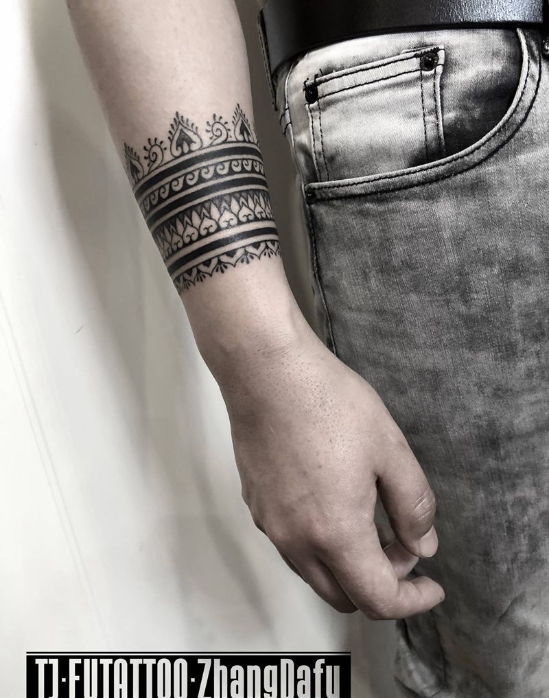 当前位置: 首页 >天津市纹身店-福刺青纹身图案>小臂臂环纹身图片_手臂图腾点刺几何臂环线条纹身图案
