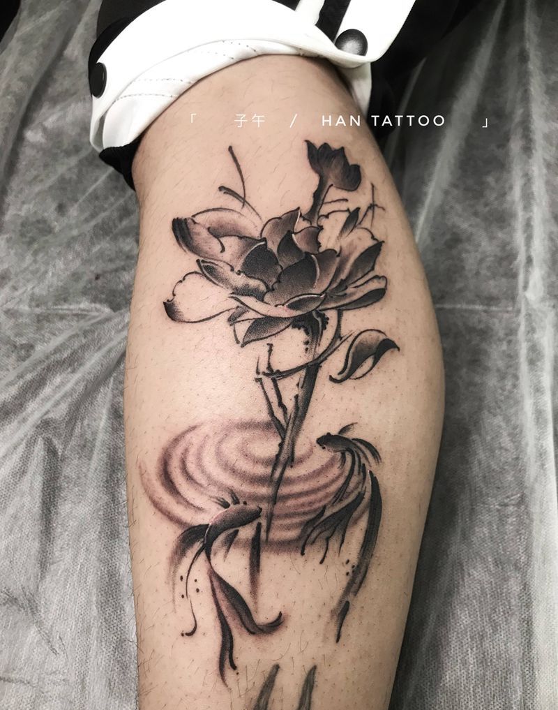 当前位置: 首页 >天津市纹身店-韩刺青 霸州店纹身图案>荷花纹身图片_腿部水墨纹身图案