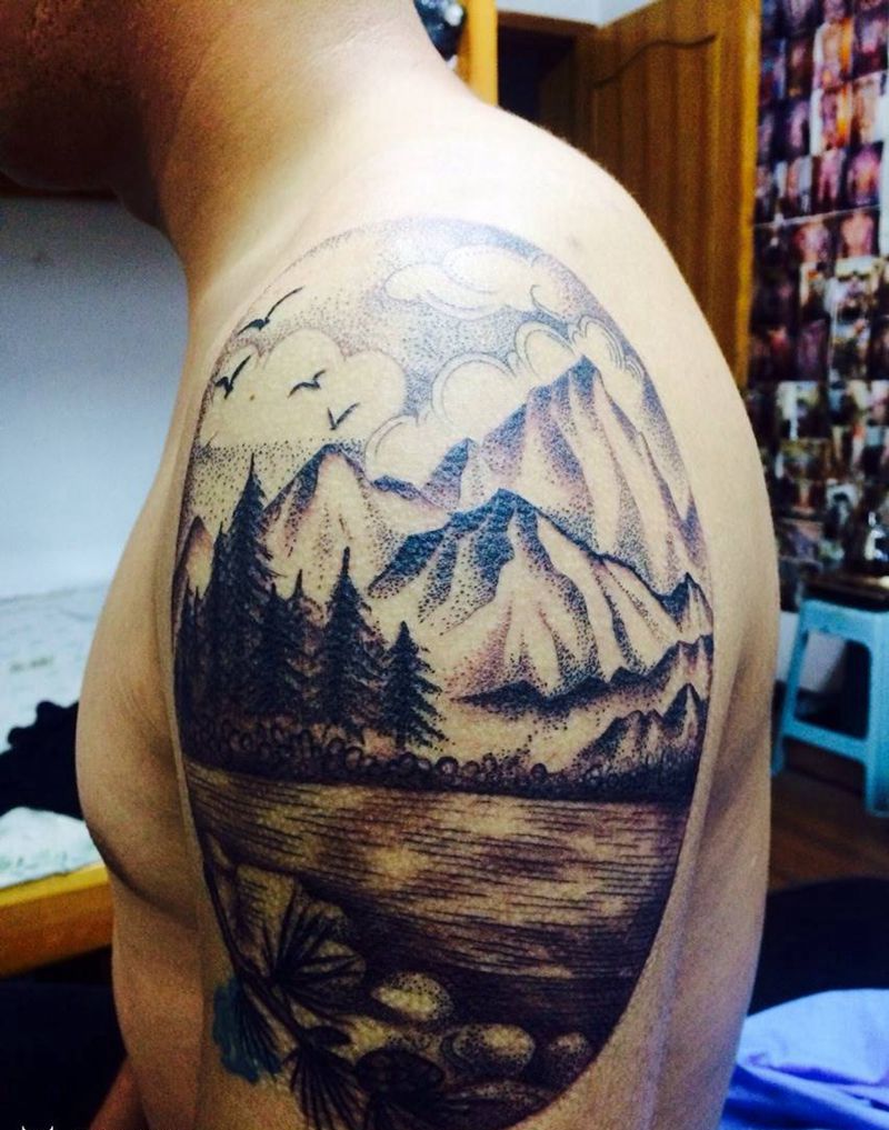 • 纹身吧推荐的披肩图腾半胛纹身图案作品展示
