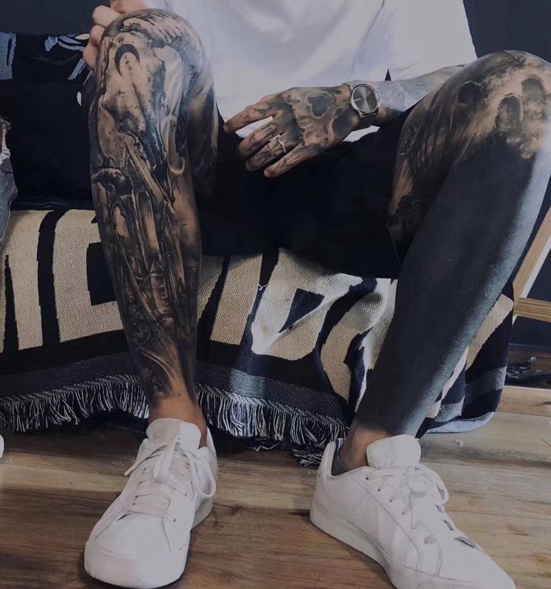 当前位置: 首页 >天津市纹身店-天津冥界纹艺纹身图案>笑笑师傅纹身图片_腿部手部欧美写实纹身图案