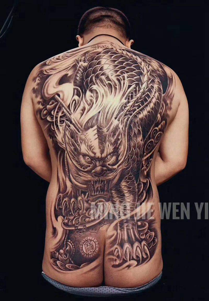 • 黑灰满背纹身图案