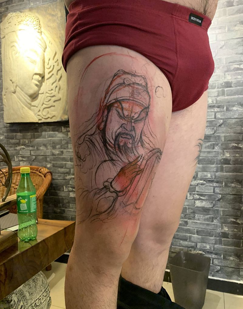 当前位置: 首页 >天津市纹身店-浪子刺青纹身图案>关圣帝君纹身图片_腿部新传统关公关羽关二爷纹身图案
