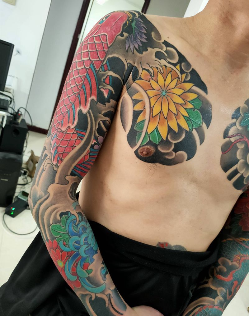 • 女性大花胸纹身_43张霸气漂亮的女性大花胸纹身图案作品