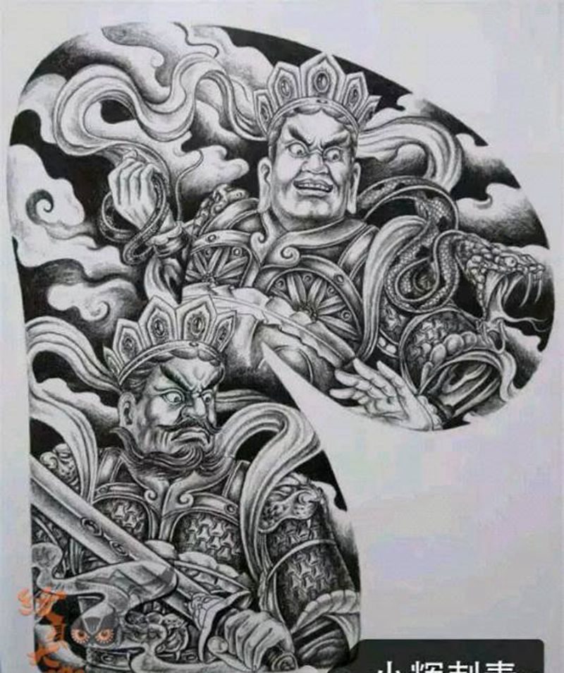 黑灰满背纹身图案