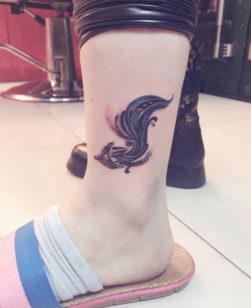 小荷花&小九尾狐纹身图片_手臂腿部清新动物纹身图案