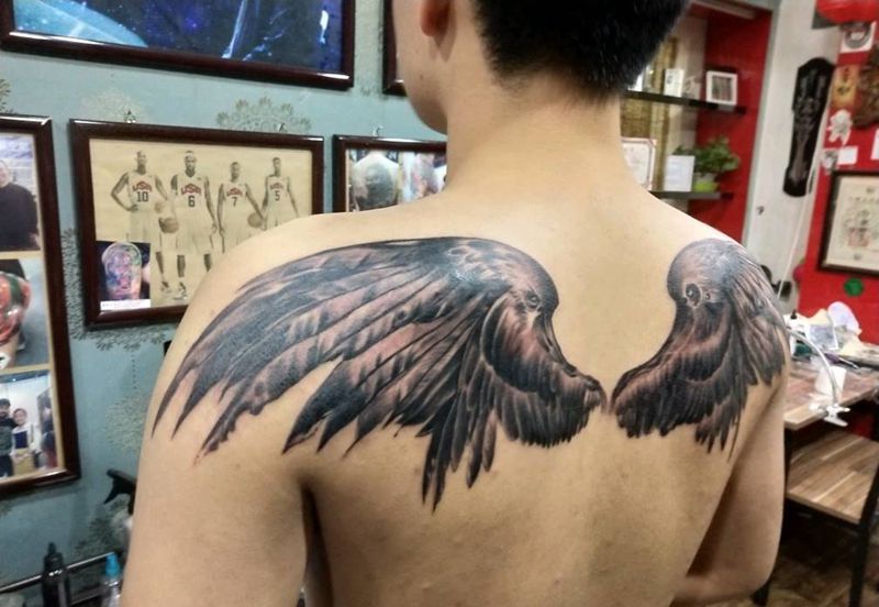 当前位置: 首页 >河北省石家庄市纹身店-李磊刺青会所纹身图案>梦的翅膀纹身图片_肩部欧美图腾原创纹身图案