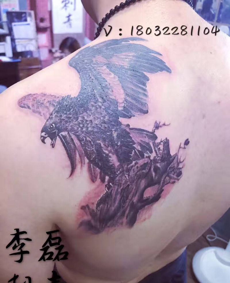 当前位置: 首页 >河北省石家庄市纹身店-李磊刺青会所纹身图案>枯鹰亮翅纹身图片