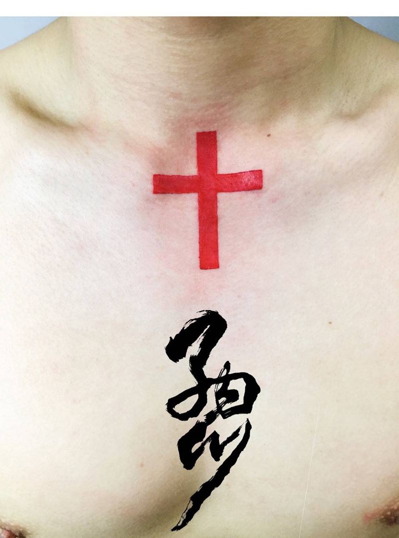 当前位置: 首页 >河北省石家庄市纹身店-纳川刺青Natural Tattoo纹身图案>红十字架纹身图片_成品颈部欧美清新几何纹身图案