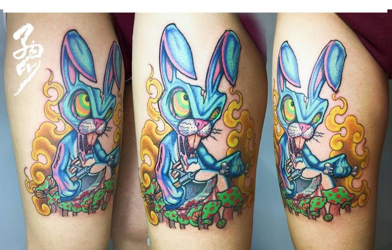 当前位置: 首页 >河北省石家庄市纹身店-纳川刺青Natural Tattoo纹身图案>吃蘑菇的兔子纹身图片_成品腿部欧美动物原创植物卡通重彩school纹身图案