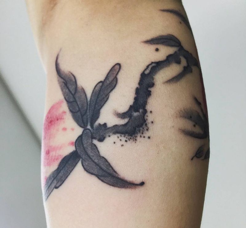 水墨蜜桃纹身图片_成品手臂传统国画植物纹身图案