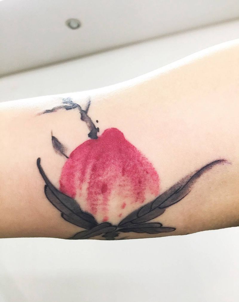 水墨蜜桃纹身图片_成品手臂传统国画植物纹身图案