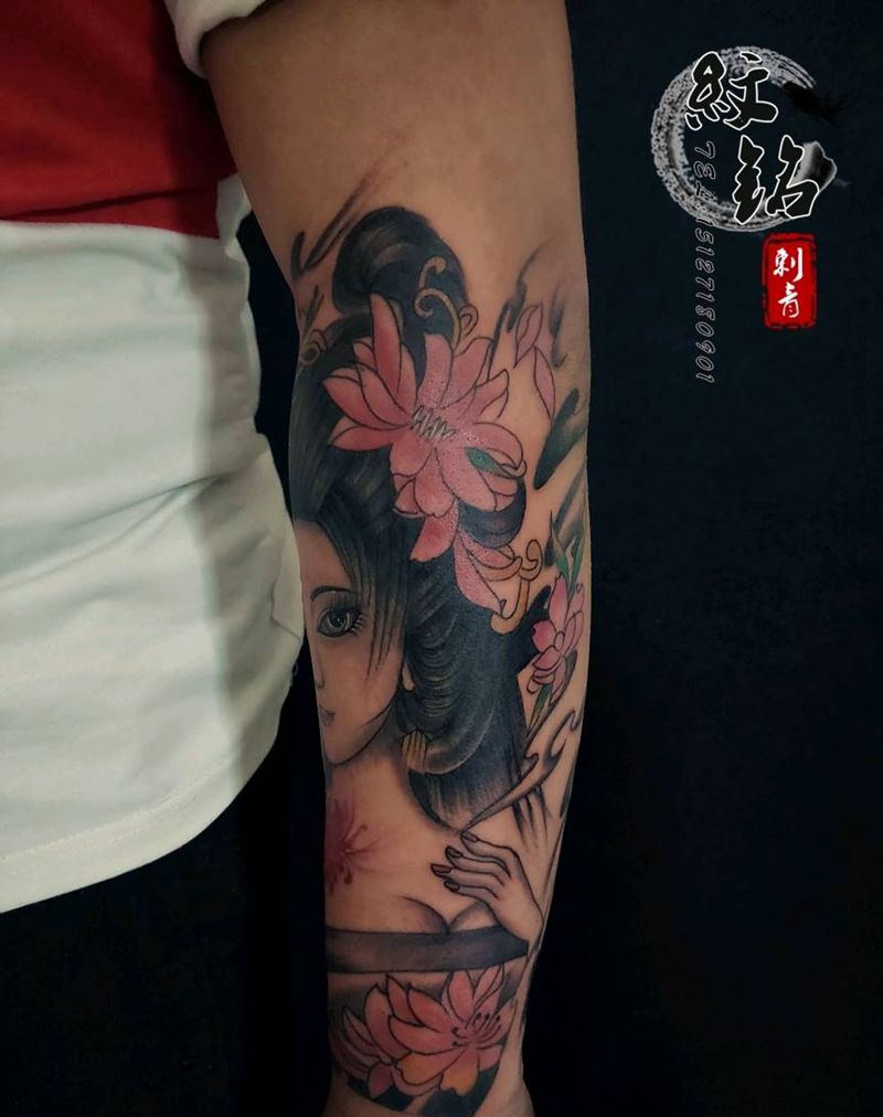 当前位置: 首页 >河北省石家庄市纹身店-纹铭刺青纹身图案>艺妓纹身图片