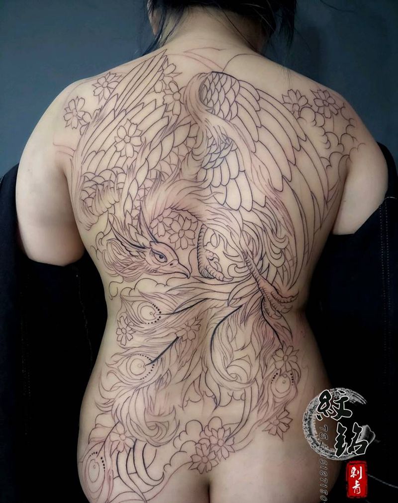 当前位置: 首页 >河北省石家庄市纹身店-纹铭刺青纹身图案>满背凤凰 割线纹身图片_背部纹身图案