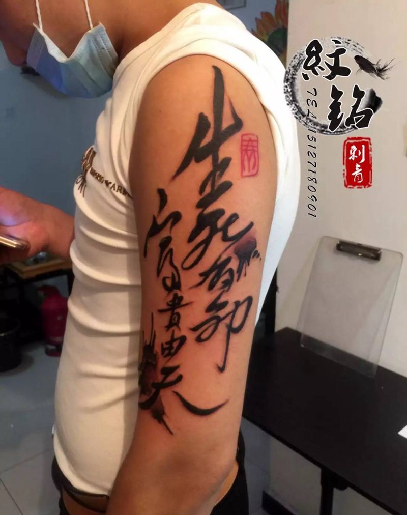 当前位置: 首页 >河北省石家庄市纹身店-纹铭刺青纹身图案>生死有命富贵由天纹身图片_成品手臂字符纹身图案
