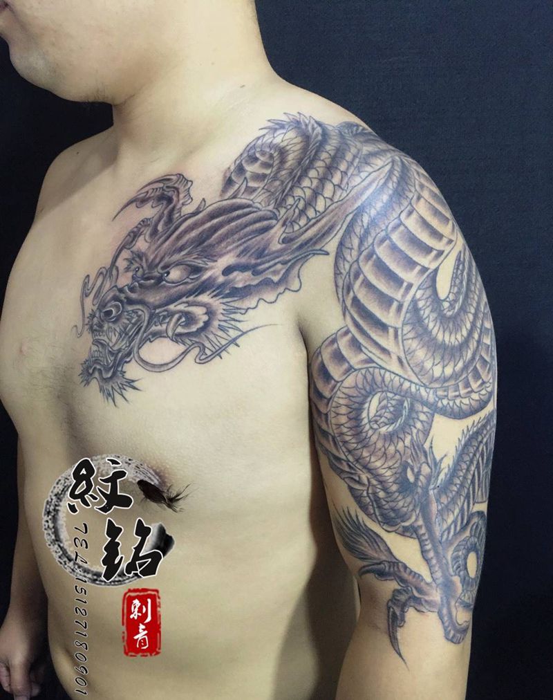 当前位置: 首页 >河北省石家庄市纹身店-纹铭刺青纹身图案>过肩龙纹身图片