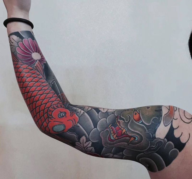当前位置: 首页 >河北省石家庄市纹身店-涅刺青纹身图案>师傅的传统花臂纹身图片