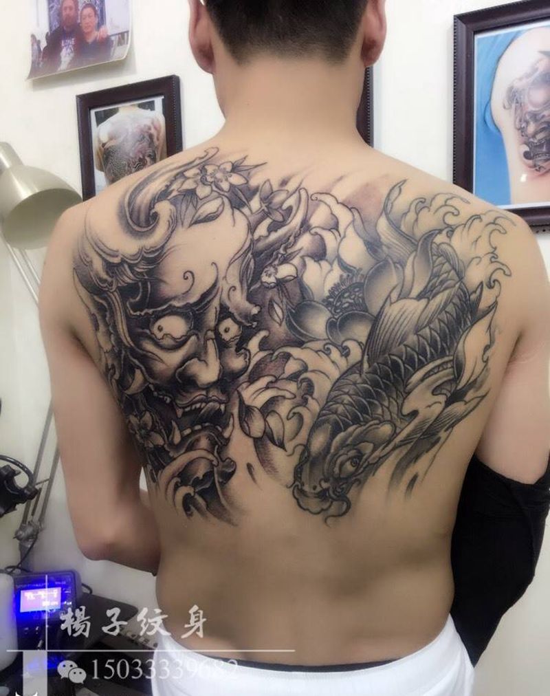 黑灰满背纹身图案