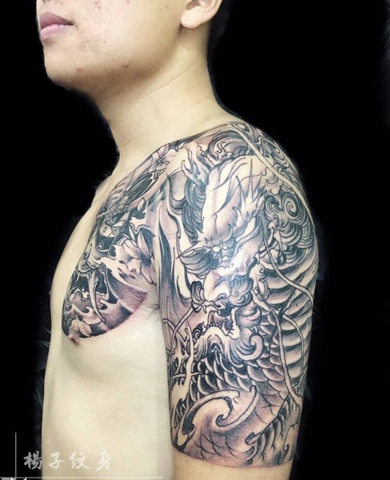 黑灰满背纹身图案