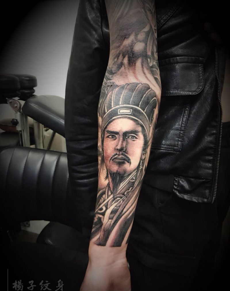 诸葛亮纹身图片_人物手臂肖像纹身图案