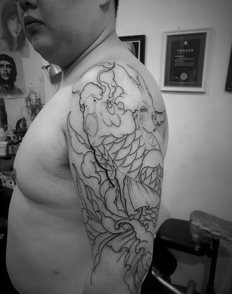 当前位置: 首页 >河北省唐山市纹身店-杨子纹身纹身图案>线条鱼纹身图片