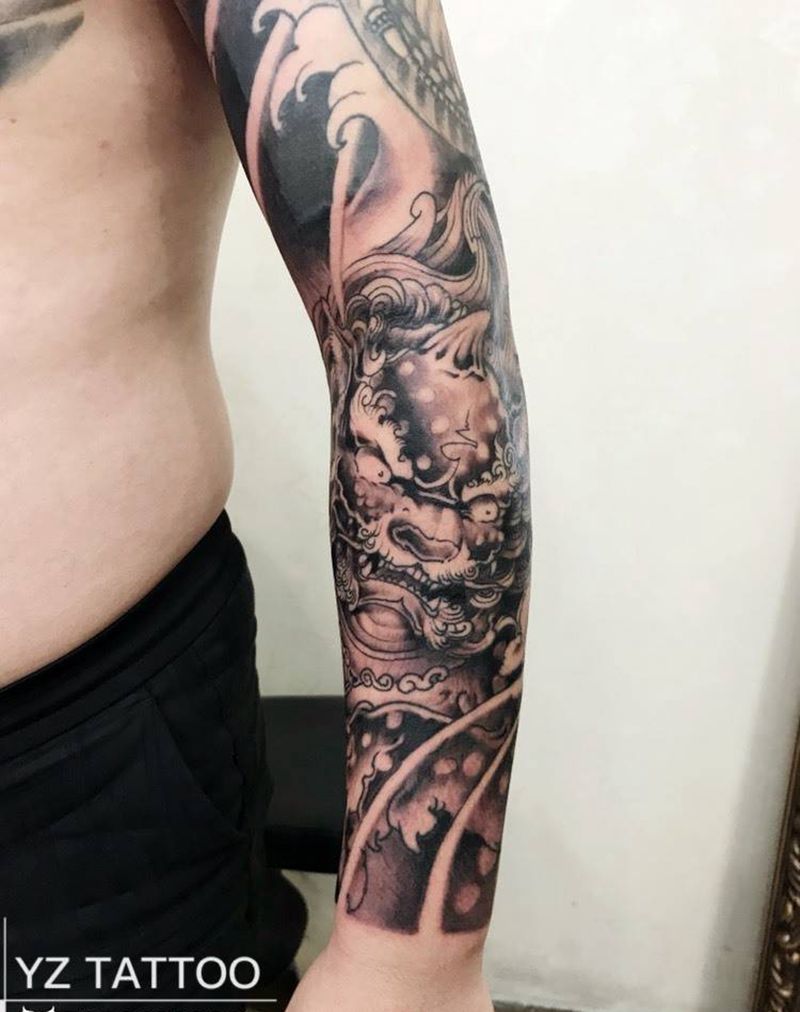 当前位置: 首页 >河北省唐山市纹身店-杨子纹身纹身图案>唐狮纹身图片_手臂新传统纹身图案