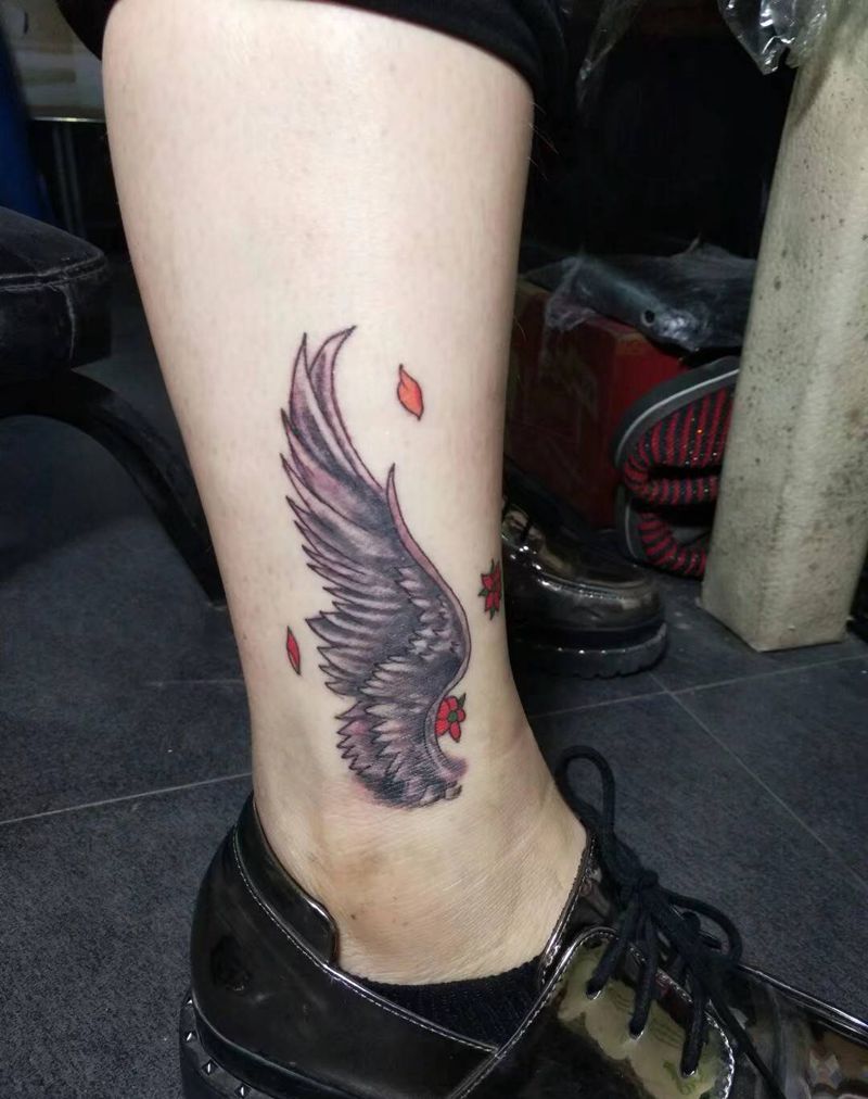 当前位置: 首页 >河北省石家庄市纹身店-逸风刺青工作室纹身图案>翅膀纹身图片_腿部New School翅膀纹身图案