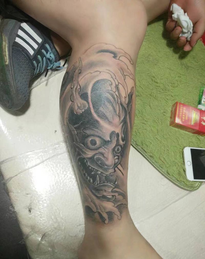 当前位置: 首页 >河北省石家庄市纹身店-逸风刺青工作室纹身图案>般若纹身图片_腿部新传统般若纹身图案