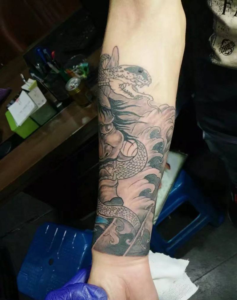 当前位置: 首页 >河北省石家庄市纹身店-逸风刺青工作室纹身图案>般若纹身图片_手臂老传统般若纹身图案