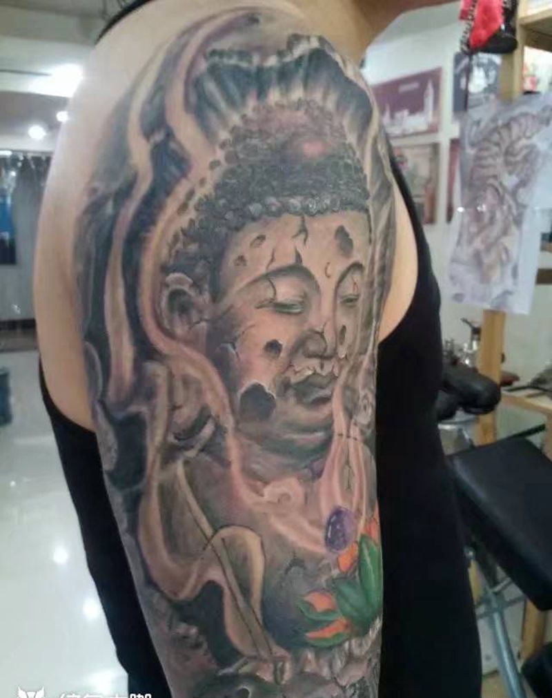 佛之护佑纹身图片_肩部新传统阿弥陀佛纹身图案