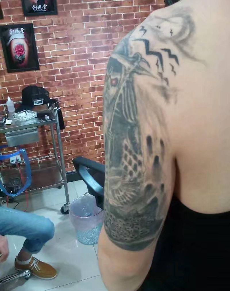 • 纹身吧推荐的披肩图腾半胛纹身图案作品展示