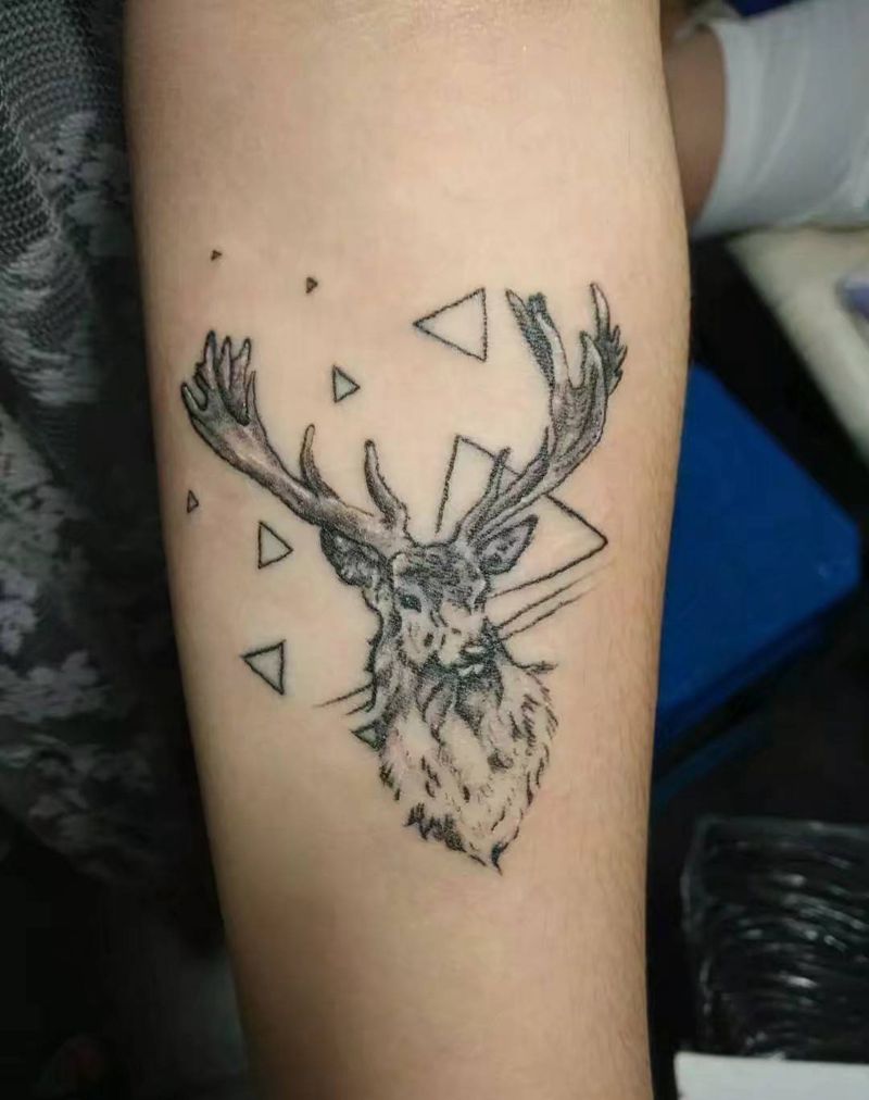 当前位置: 首页 >河北省石家庄市纹身店-逸风刺青工作室纹身图案>鹿纹身图片_手臂点刺动物纹身图案