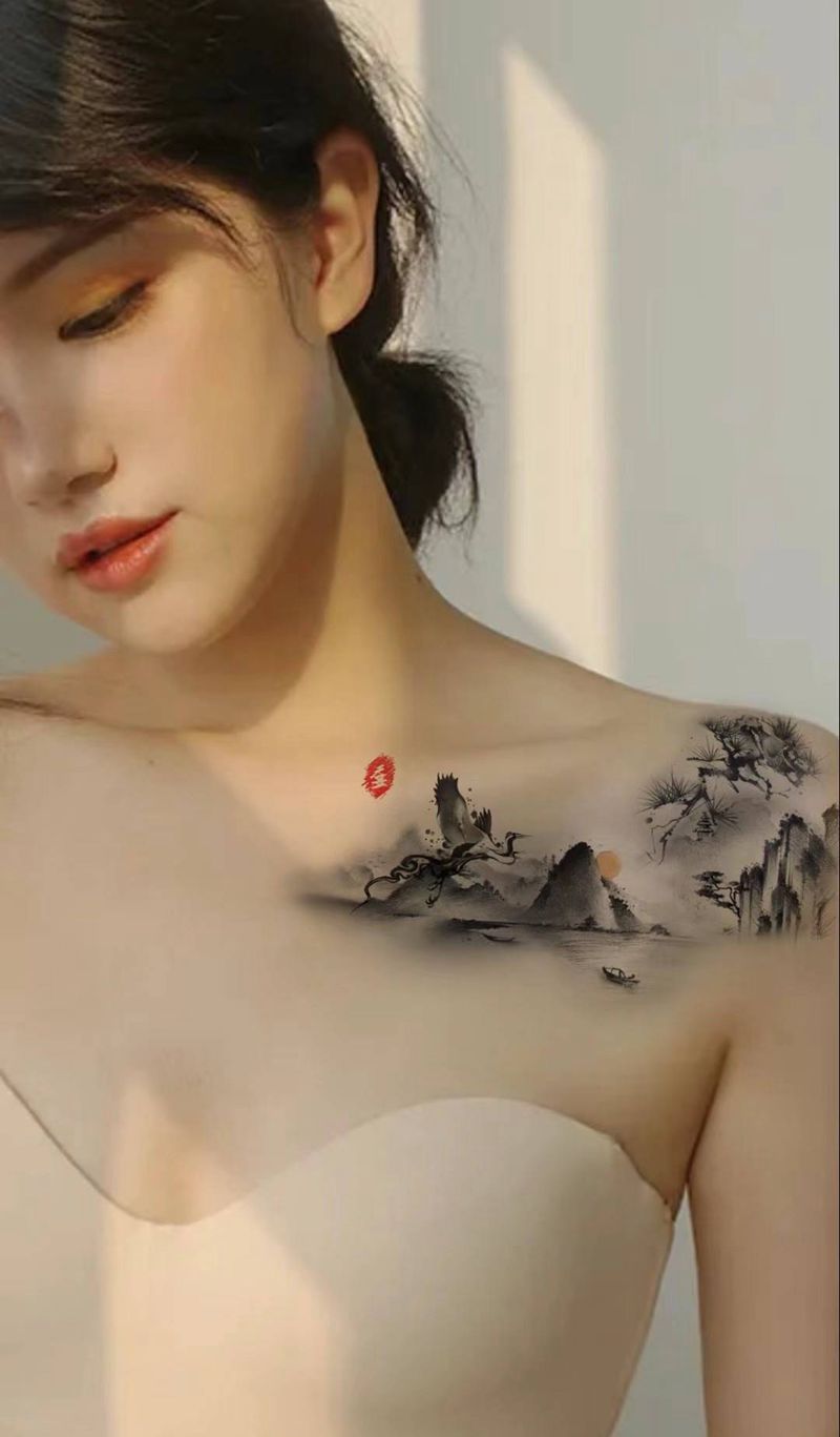 水墨纹身图片_肩部纹身图案