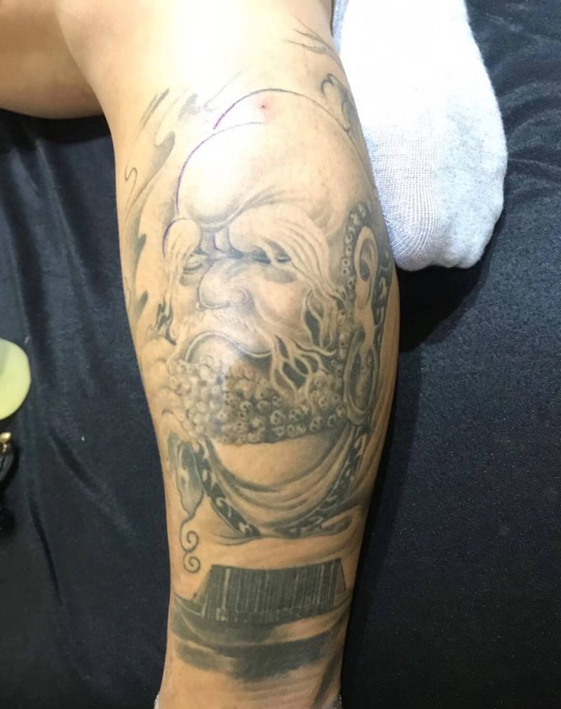 • T网红王老大花腿龙纹身图片_腿部新传统纹身图案