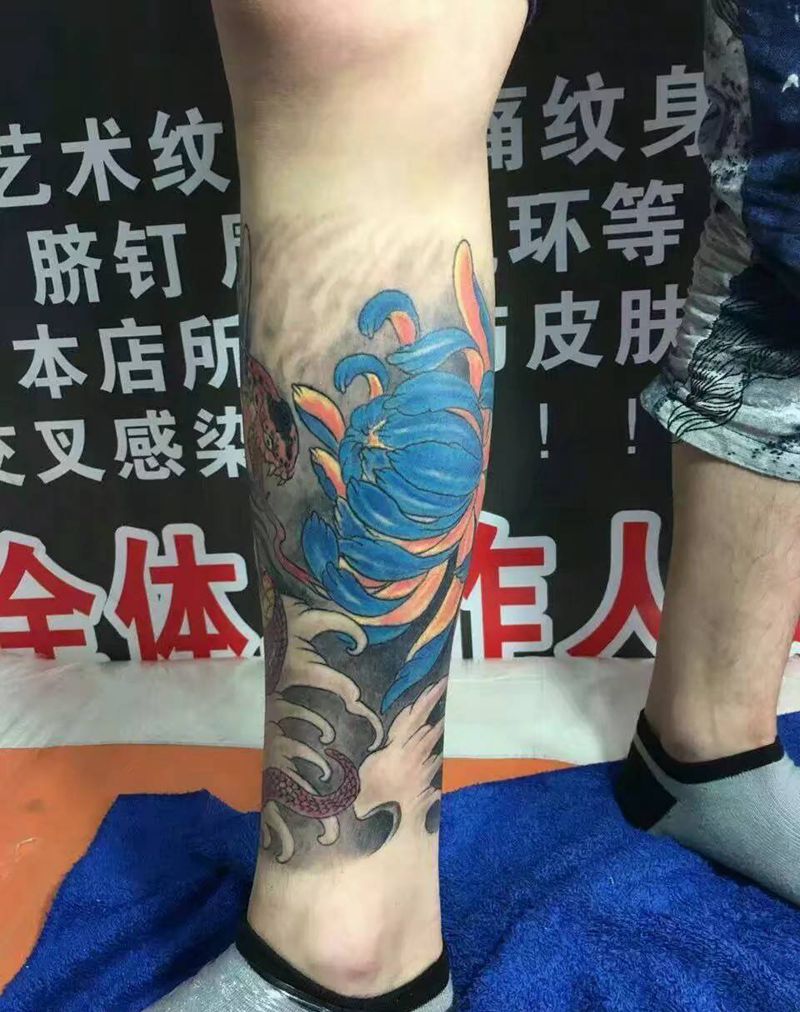 • T网红王老大花腿龙纹身图片_腿部新传统纹身图案