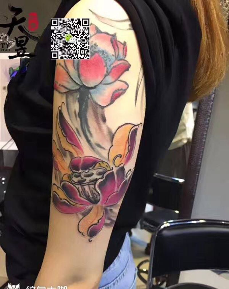 一组15张莲花纹身手