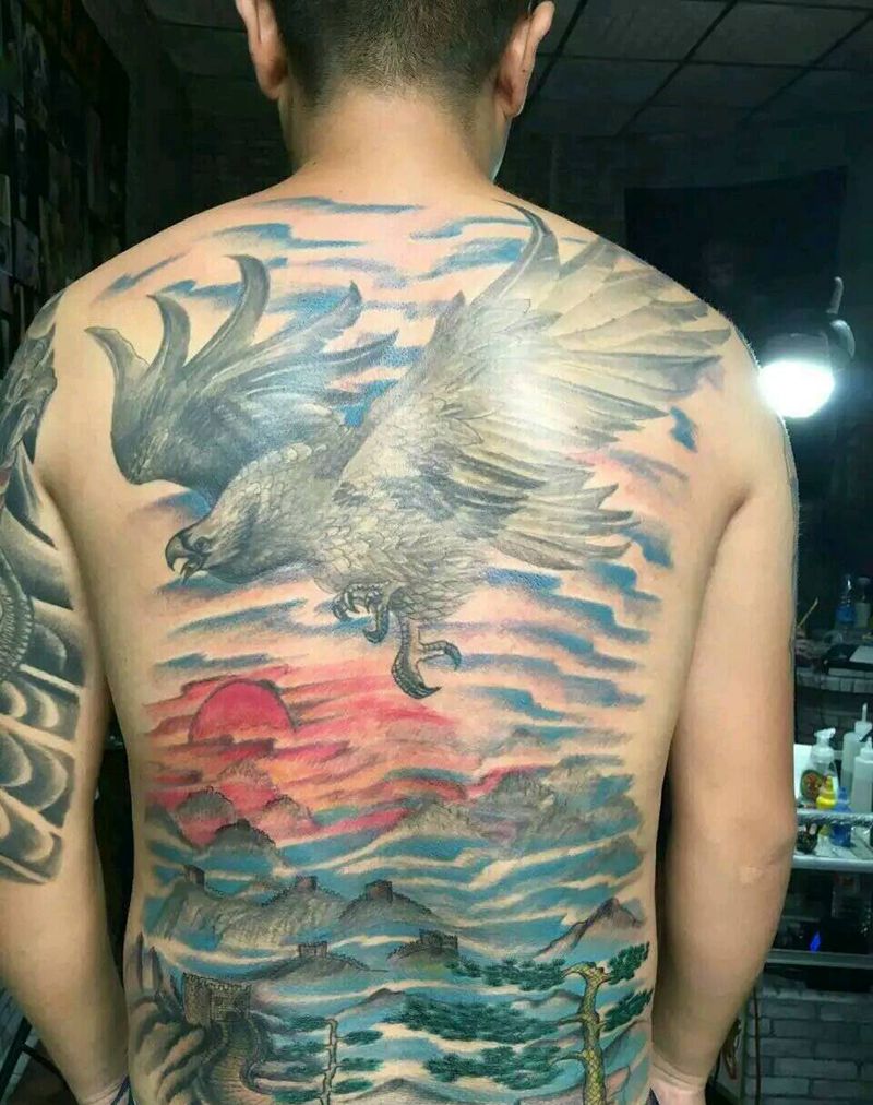 当前位置: 首页 >河北省秦皇岛市纹身店-秦皇刺青纹身图案>大鹏展翅纹身图片_背部传统国画动物植物静物原创手稿纹身图案