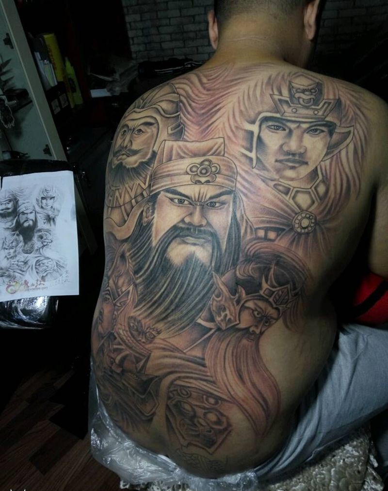 当前位置: 首页 >河北省秦皇岛市纹身店-秦皇刺青纹身图案>五虎上将纹身图片_背部传统肖像人物成品纹身图案