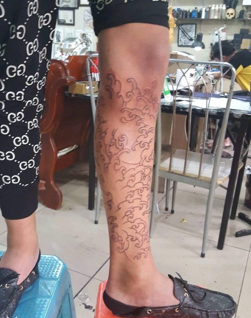 • T网红王老大花腿龙纹身图片_腿部新传统纹身图案
