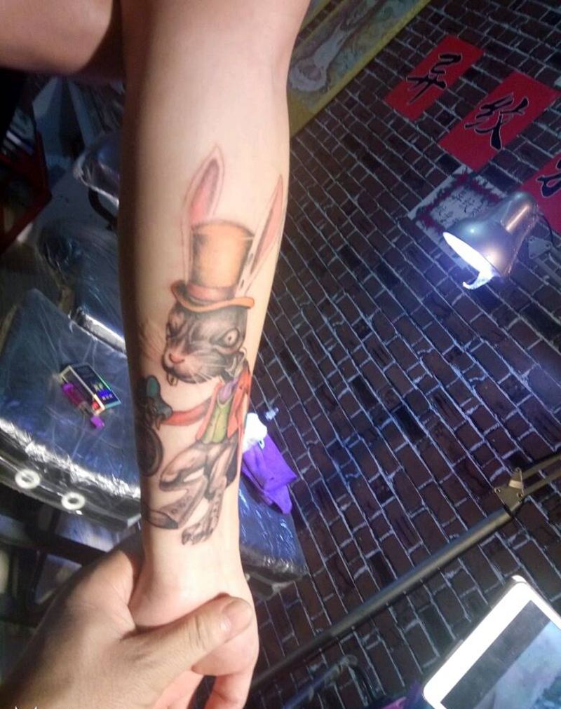 当前位置: 首页 >河北省邯郸市纹身店-帝易纹身总师父店纹身图案>流氓兔纹身图片_手臂欧美写实动物人物纹身图案