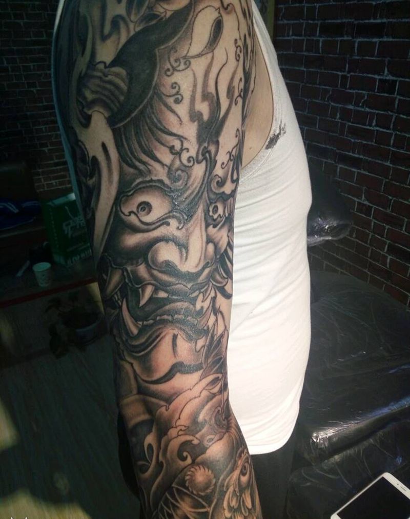 当前位置: 首页 >河北省邯郸市纹身店-帝易纹身总师父店纹身图案>般若鱼花臂纹身图片