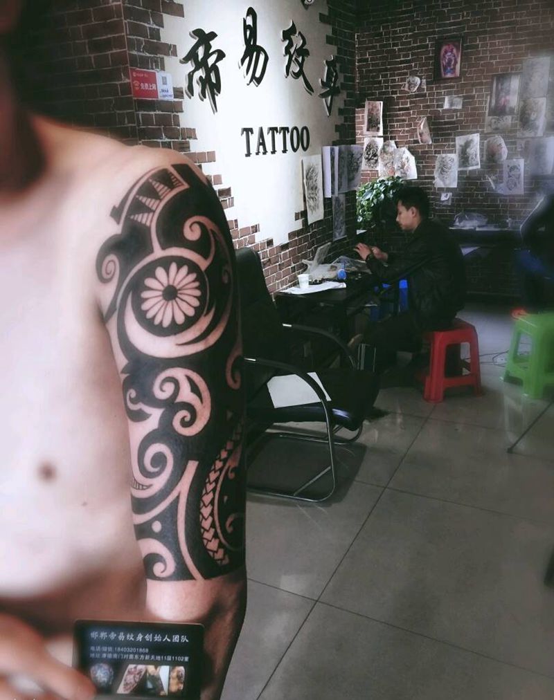 当前位置: 首页 >河北省邯郸市纹身店-帝易纹身总师父店纹身图案>图腾纹身图片_肩部手臂几何成品纹身图案